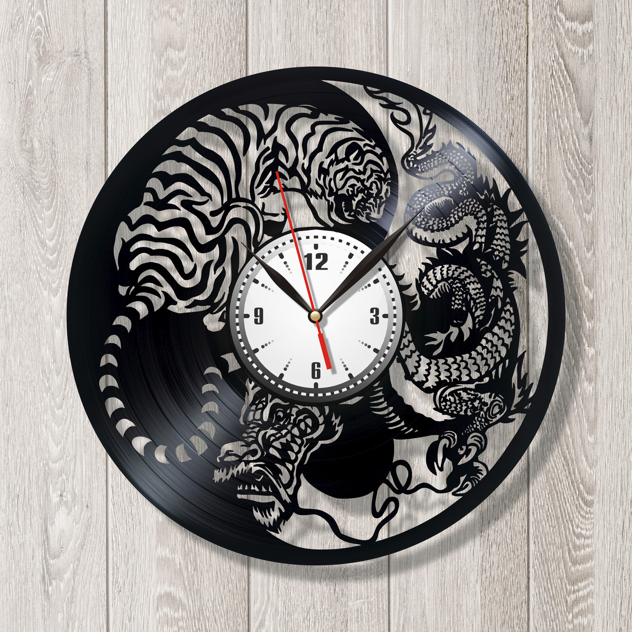 Інь Янь Янь годинник Дракон годинник Годинник із тигром Філософський годинник Годинник чорний Символ інь янь Тихий механізм 300 мм